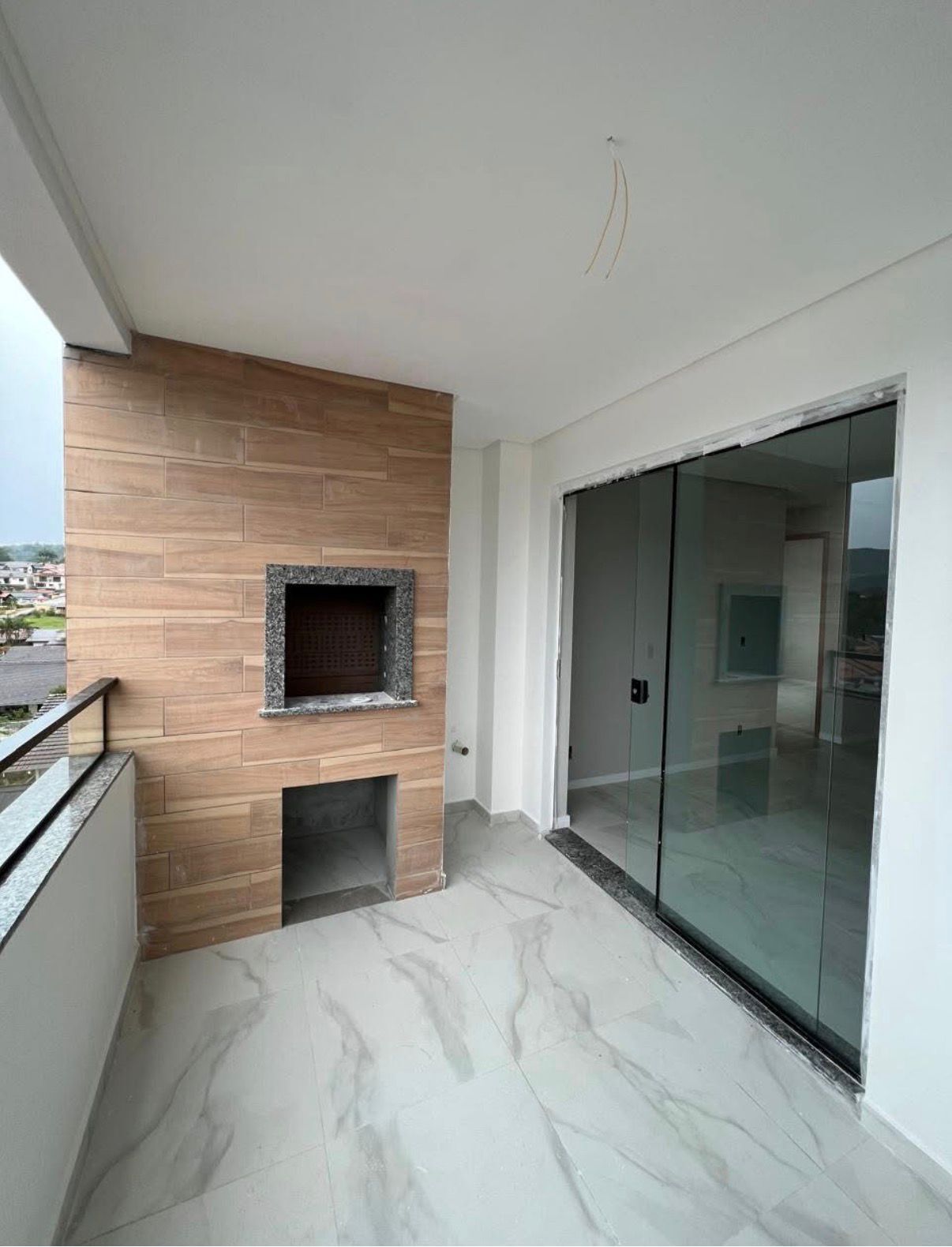 * Sacada com churrasqueira e living integrado.